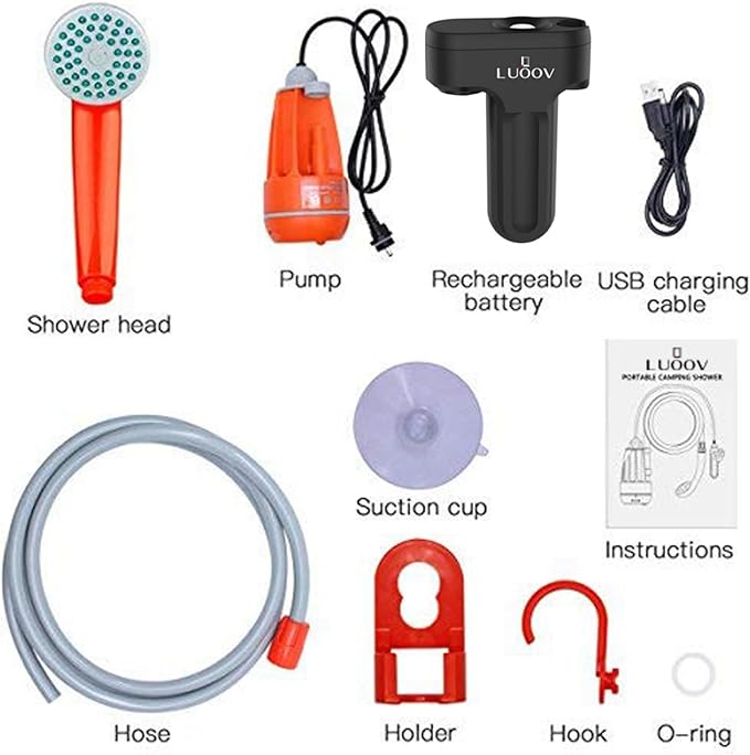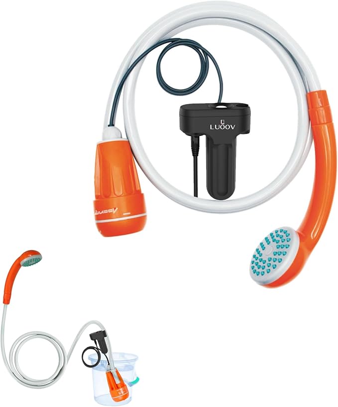 - 5. Lightweight and portable: The shower is very light and handy, can be easily stored in luggage, backpacks or car boots. The compact design will delight anyone when camping.