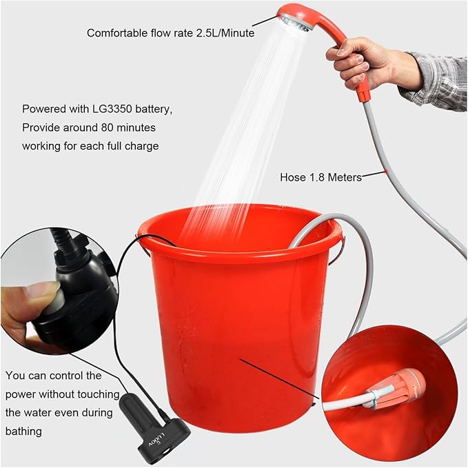 - 3. Durable and powerful: We offer one batteries that can work for up to 45-60 minutes on a full charge, two for up to 90-120 minutes so that you can constantly happily shower with up to 4 l/min (1 gal/min). It provides ideal and strong water pressure to make bathing easier.