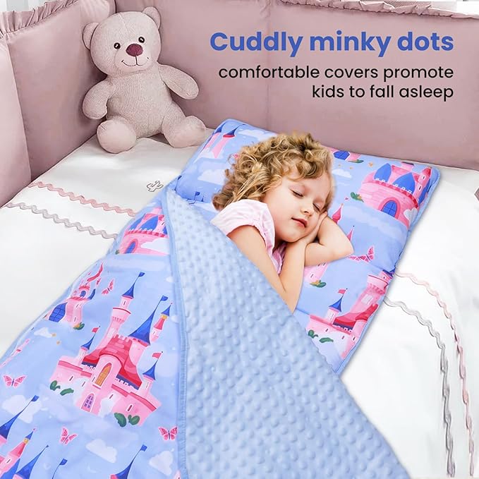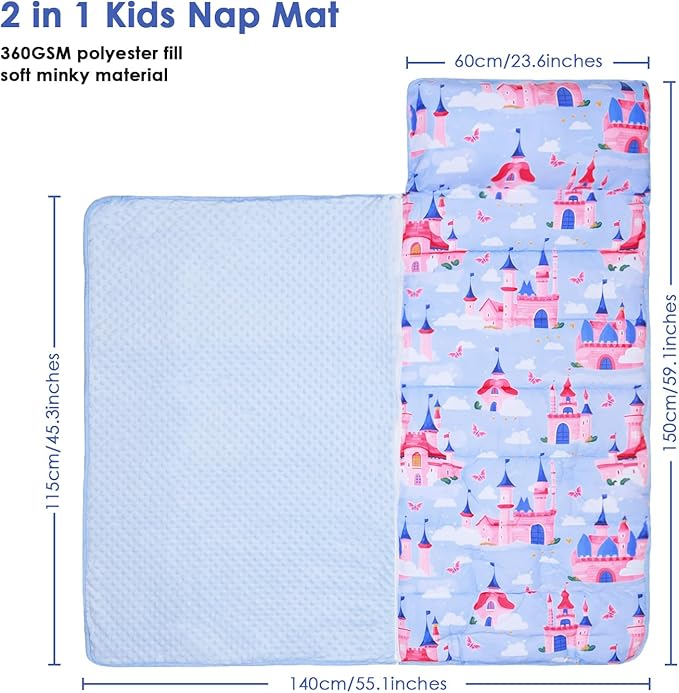 - Premium and Soft Materials:Our nap mat for toddlers is made with high-quality poly microfiber and lined with minky dot fabric, which are both incredibly soft and gentle on your little one's skin.Meanwhile,the lovely full-print pattern is more attractive to your child without worrying about fading.