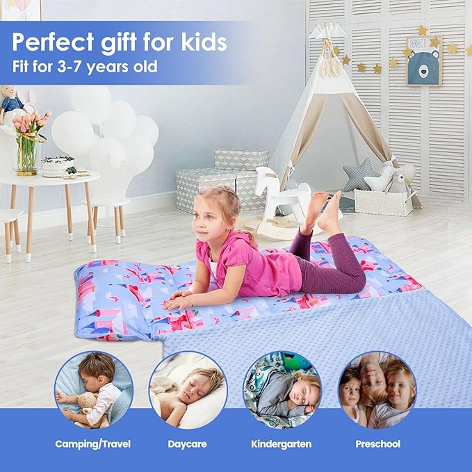 Kids Sleeping Bag Nap Mat with Removable Pillow and Blanket,Extra Thick Large 2 in 1 Slumber Bags for Boys Girls,Toddler Nap Mat for Preschool Daycare Travel Camping