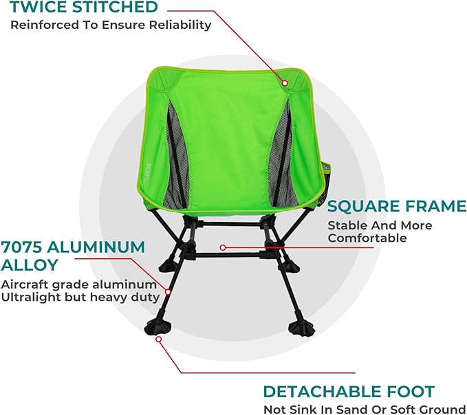 - Ready for Any Outdoor Occasion: From beaches to backcountry, tailgates to festivals—this ultralight chair is your go-to companion. Whether you're hiking, fishing, camping, or catching sunset views, it's made to support your adventures anywhere, anytime
