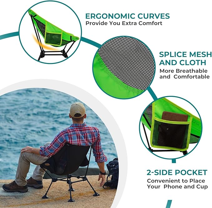 - Ready for Any Outdoor Occasion: From beaches to backcountry, tailgates to festivals—this ultralight chair is your go-to companion. Whether you're hiking, fishing, camping, or catching sunset views, it's made to support your adventures anywhere, anytime.