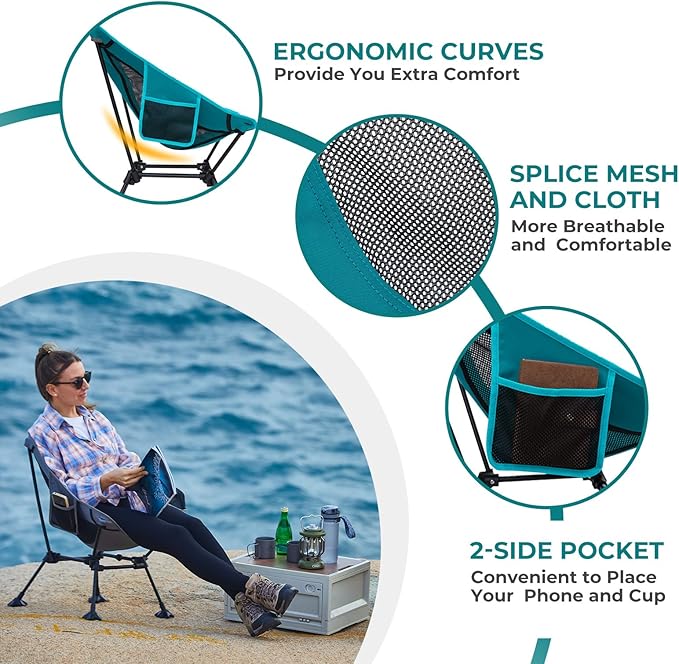 - Ready for Any Outdoor Occasion: From beaches to backcountry, tailgates to festivals—this ultralight chair is your go-to companion. Whether you're hiking, fishing, camping, or catching sunset views, it's made to support your adventures anywhere, anytime.