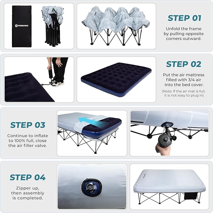 - 【Queen Size & Easy Folding Design】: Enjoy the comfort of home even in the great outdoors with our spacious queen size camping cot. Designed to fold down quickly and effortlessly, this portable airbed is ideal for two person and perfect for camping, travel, or even extra guests at home