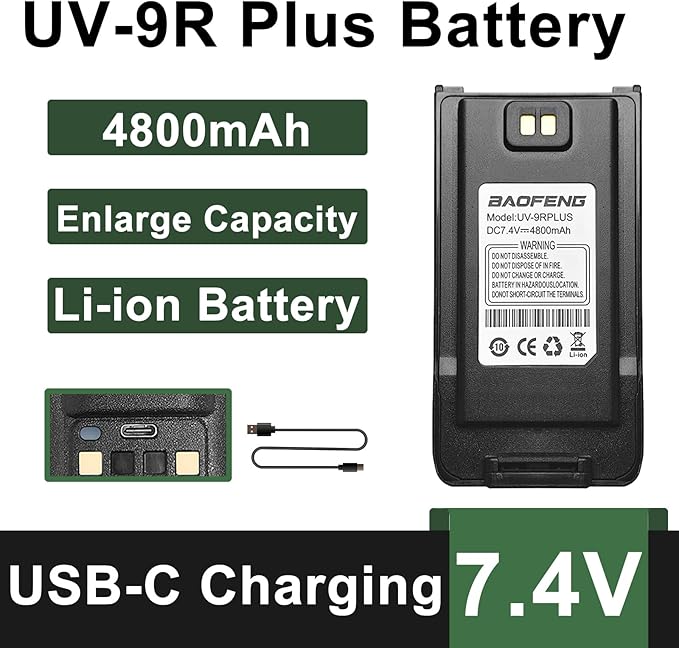BAOFENG 2 Packs UV-9R Plus Battery USB-C Charger Enlarge 4800mAh Capacity Thicken BL-9 Li-ion Battery for T57 Accessories UV-9R Plus MK1 Portable Radio Battery for Adult