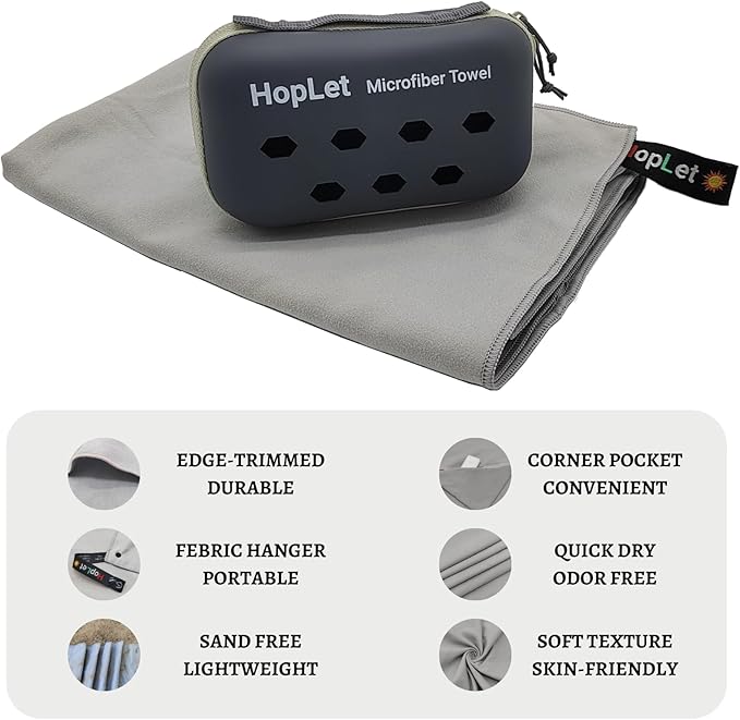 - 【Premium Microfiber Towel】The microfiber camping towel is designed with 100% microfiber, our skilled team of quality controllers ensures that each towel meets our stringent quality standards. The edge-trimmed microfiber towel is more durable and not easy to tread off. The snap loop with button can be hung up for drying anytime and anywhere. Zipper corner bag of the microfiber sport towel (M L XL XXL) can help you store small items such as mobile phones