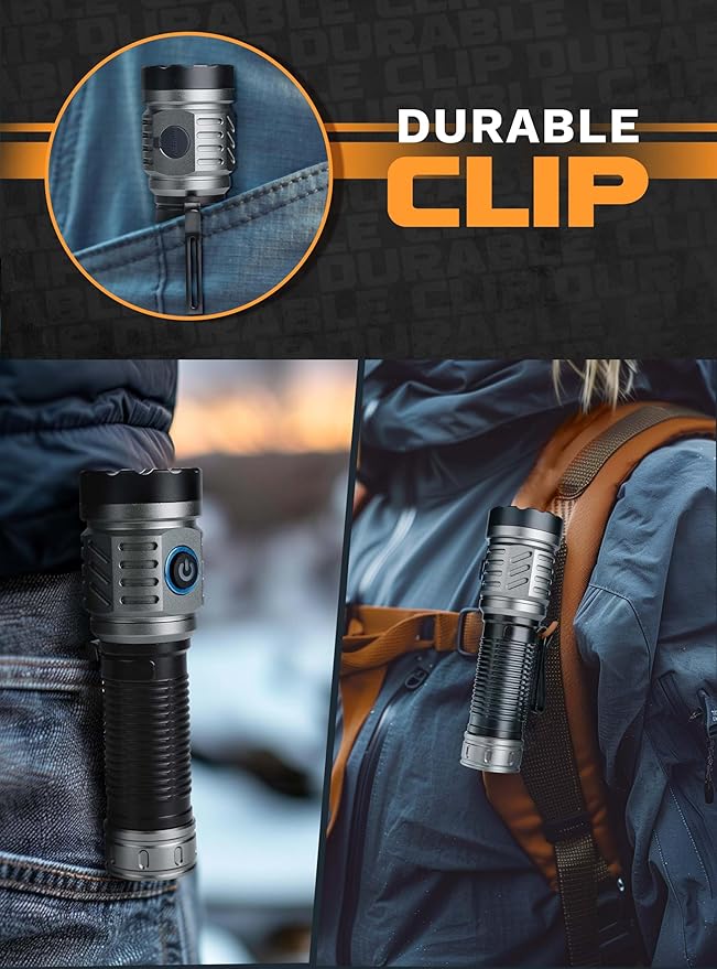 - 【Clip & Cord】This bright flashlight is equipped with a durable clip, allowing you to easily attach the light to clothing, pants, backpacks, and more. You can use it for night walking, running, cycling, camping, mountaineering, and diving.