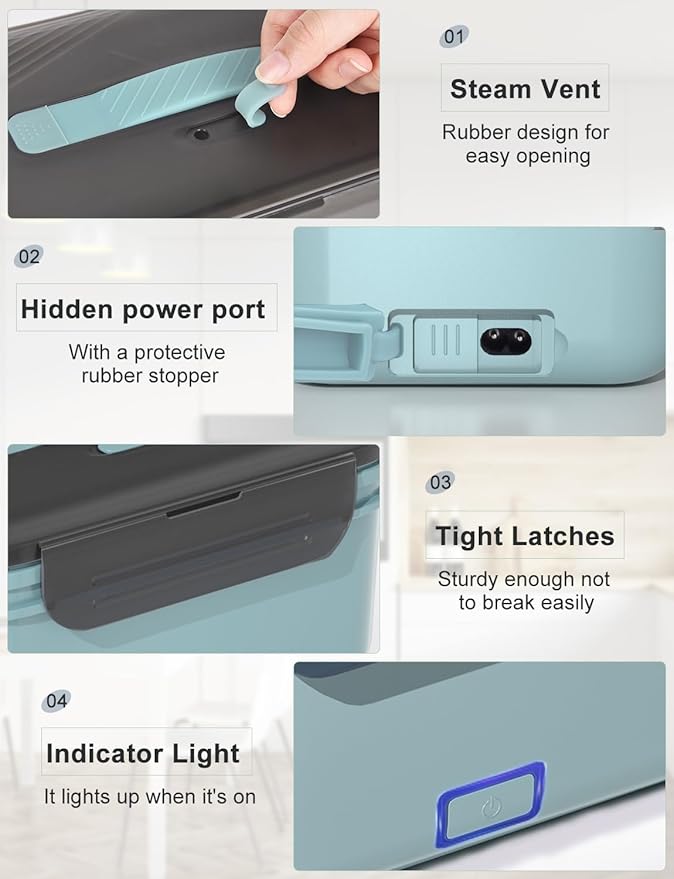 - Stronger Leak-proof Properties - The electric lunch box cover has latches on all four sides, and its coverage area is designed to be larger, making it stronger and not breaking easily. And the built-in rubber sealing ring can ensure that the food will not leak during transportation and keep the food fresh! No need to worry about food spills, even in a shaky car environment!