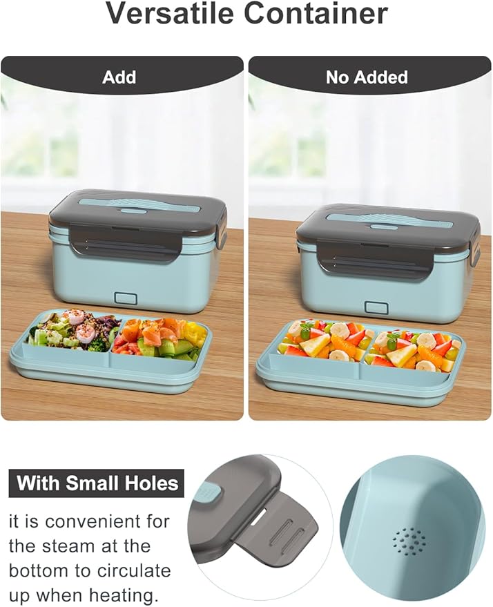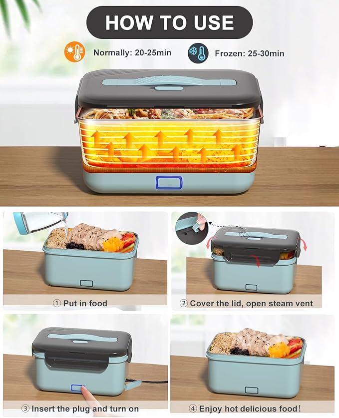- Max 100W High-power & Fast Heating - Electric lunchboxes for adults adopt a PTC heating system, with constant temperature and low heat consumption cycle function, it can keep the food heated evenly and also lock the moisture of the food. It only takes 20-30 minutes to quickly heat up to the optimum temperature, enjoy a fresh home-cooked meal! Eliminate the fatigue of your day!