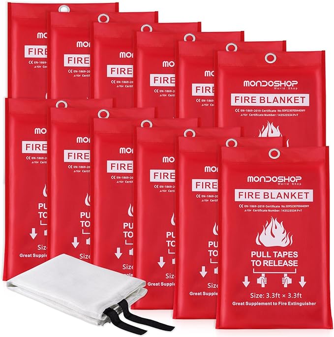 Fire Blanket for Home Kitchen Camping 12 Pack Emergency Fire Blanket Fire Resistant Blanket for Grill, Car, Office, Warehouse, School, Picnic, Garages, Workshops
