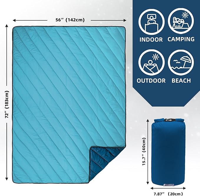 - 【Ultralight & Portable】 - Our puffy camping blanket is huge at 78" X 56" and the total weight was only 2.82 pounds. It's light and easy for carrying and storage. Fleece camping blanketincludes a convenient bag for the warm camping blanket, you can take it almost anywhere, this will be