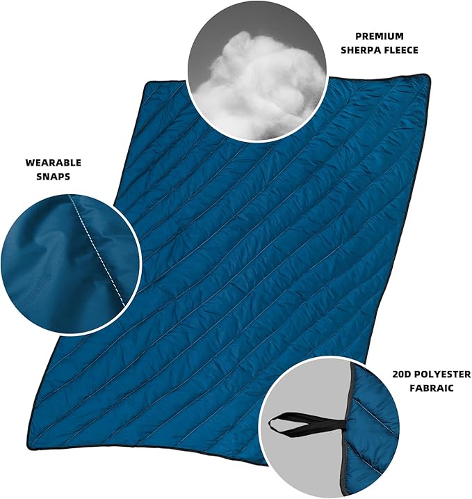 - 【Multipurpose Backpacking Blanket & Poncho & Sleeping Bag】 - This is a multi-purpose camping blanket. In addition to being used as a warm blanket for cold weather, the buttons on both sides combine to be used as a poncho blanket, which is very convenient and can free your hands. And could serve as a sleeping bag, if you have two or more blankets, you can do up them together with buttons.