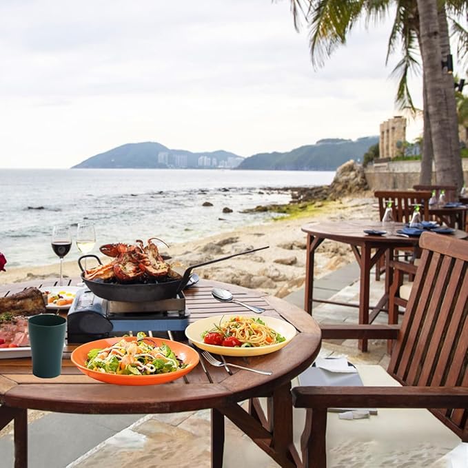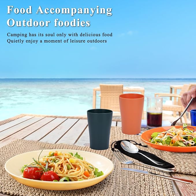 - HIGH QUALITY: The plates and cups of this camping set are made of pp material, BPA free. They are lightweight, unbreakable and sturdy, the stainless steel cutlery is made of high quality stainless steel, sturdy and durable.