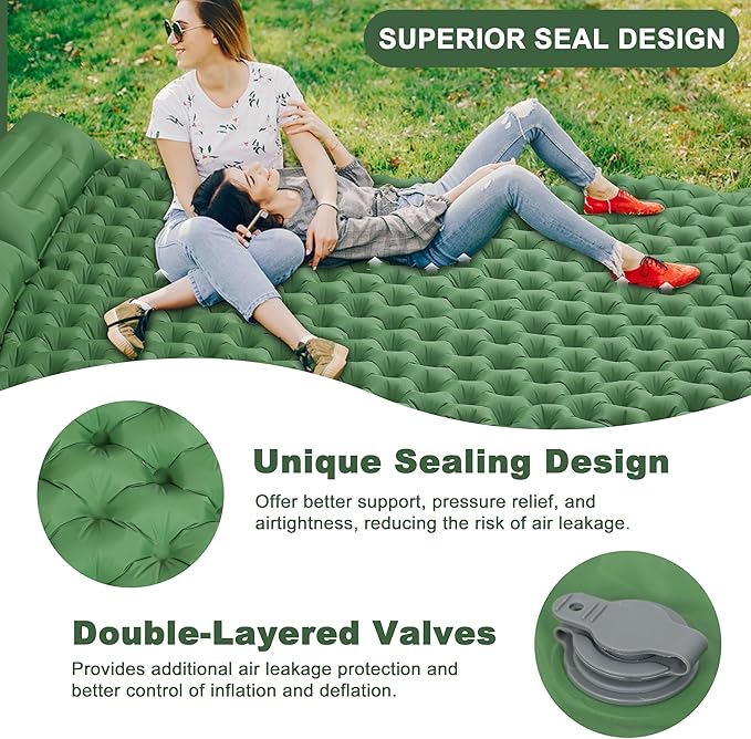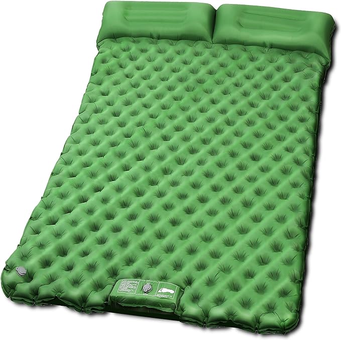 Deluxe 2-Person Sleeping Pad for Camping, Double Ultra-Light Inflatable Camping Mattress with Pillow, Built-in Foot Pump for Backpacking, Hiking & Travel - Includes Carry Bag & Repair Kit