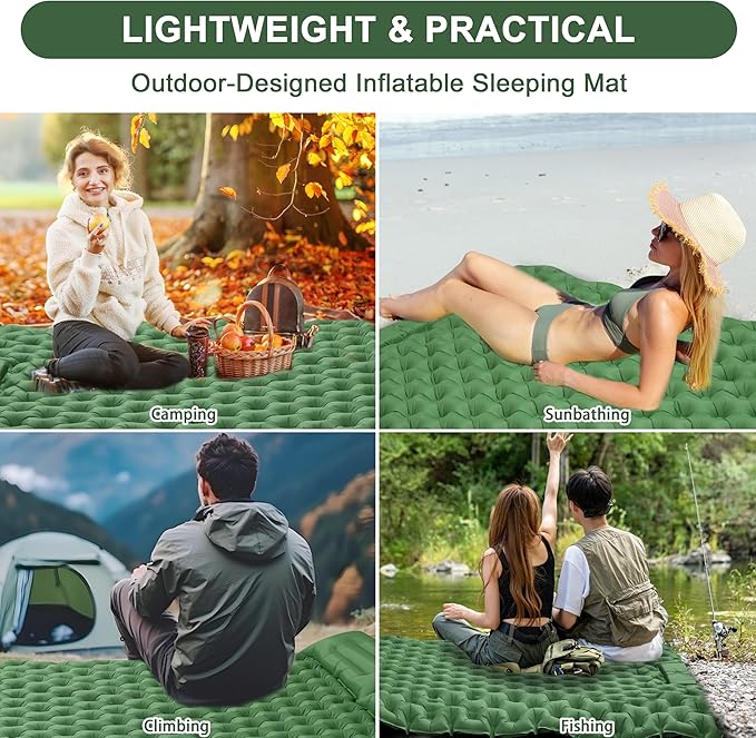- 【Durable and Waterproof】Our camping pad, made from tough 40D nylon and TPU, withstands outdoor conditions, resisting water and tears. Its durable design ensures you stay dry and comfortable, making it your ideal companion for any adventure. This camping mat is built for durability and comfort under the stars.