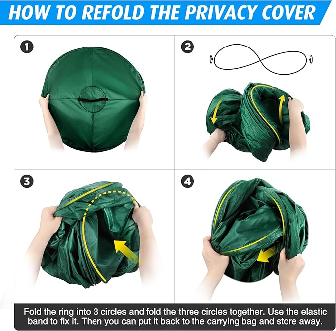 - PRODUCT DETAILS – Material: 190T Polyester. Dimensions: Fold down: (L) 14.1" x (W) 11.8"; Set up: (Diameter) 36.7" x (High) 51.2".