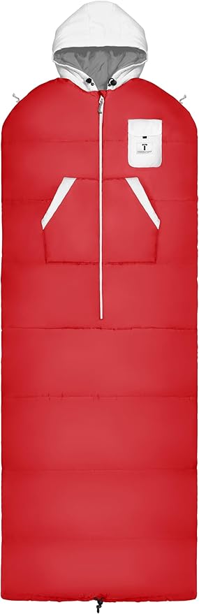 Thermotuff Wearable Sleeping Bag with Dual Hoodie, Zippered Arm Holes, Pockets & Adjustable Drawstring - Ideal for Camping, Cold Weather Hiking, and Stadium Sak Blanket
