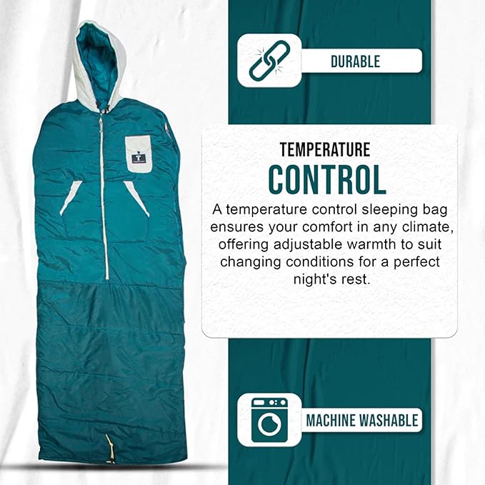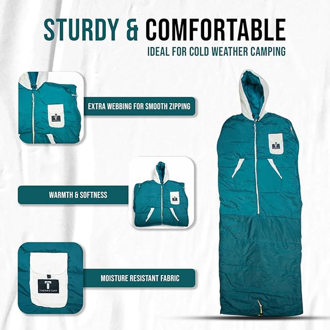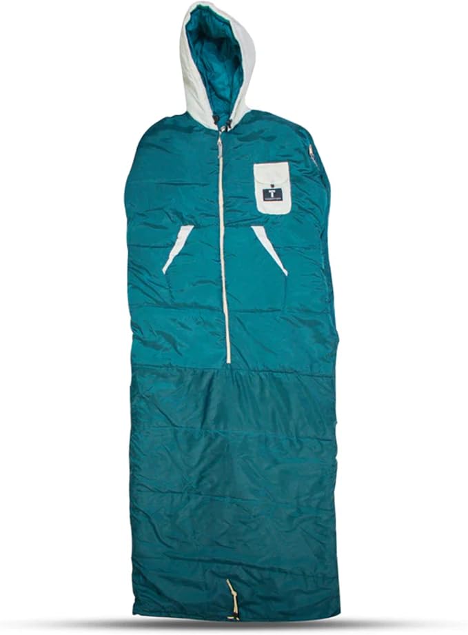 Thermotuff Wearable Sleeping Bag with Dual Hoodie, Zippered Arm Holes, Pockets & Adjustable Drawstring - Ideal for Camping, Cold Weather Hiking, and Stadium Sak Blanket