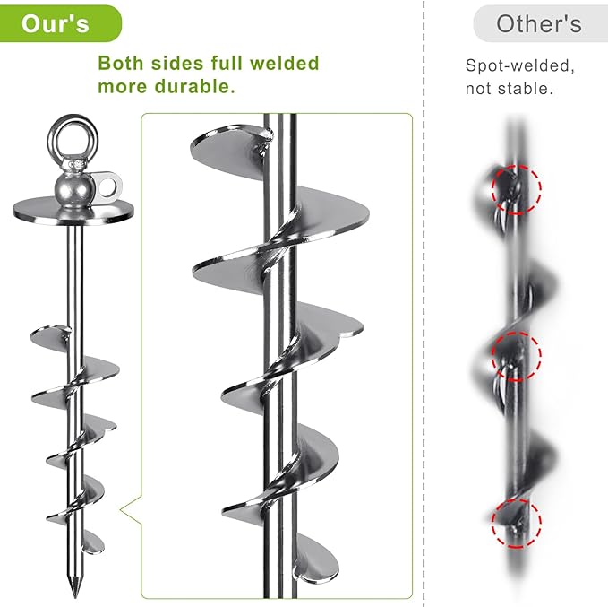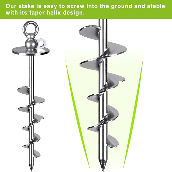 - 【KEEP YOUR DOG SAFE AND FREE】Our dog tie out stake is designed to securely anchor your dog in any ground condition, such as rocky, clay or sandy soils. It has a spiral blade that is welded and tapered to ensure a firm grip on the ground, preventing your dog from pulling it out and roaming around freely and safely.