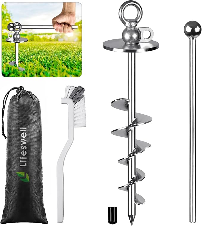 - 【EASY TO INSTALL AND REMOVE】With the included torque bar, you can easily screw the stake into the ground as tightly as possible. Then simply attach any leash or cable of your choice.