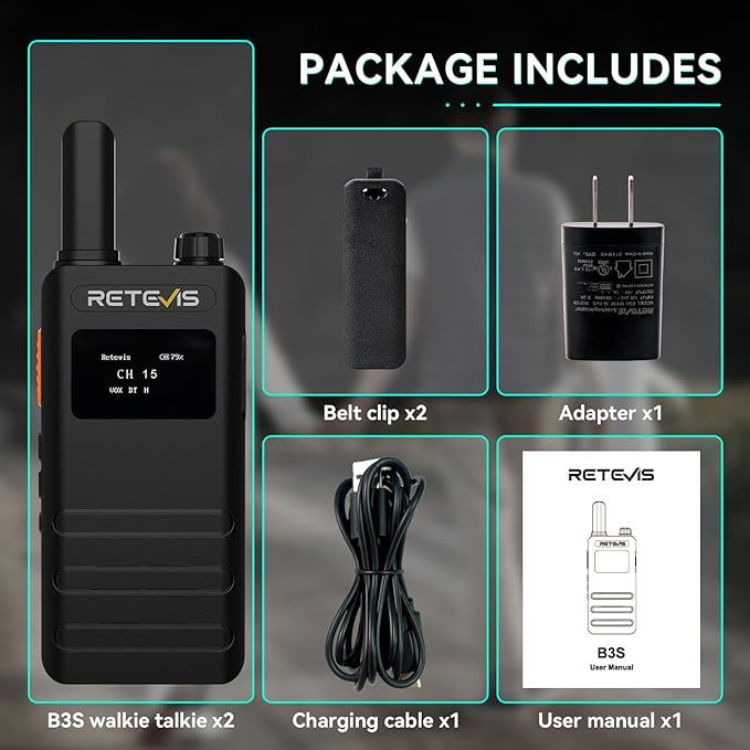 Retevis B3S Walkie Talkies,Portable Two-Way Radios with LCD Screen,Emergency Alarm,1620mAh Battery, Handsfree Walkie Talkie for Family Outdoor Trip (2 Pack)