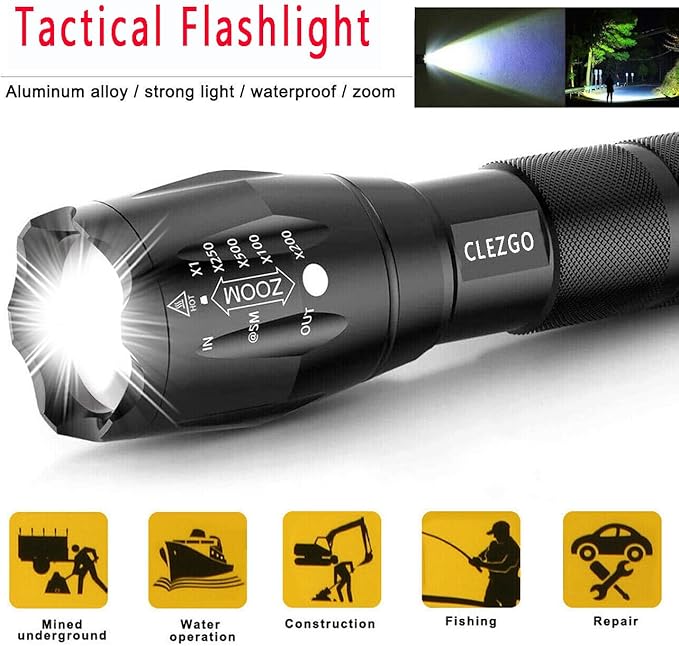 - Various Uses: The Flashlight for outdoor, mountain climbing, camping, outdoor activities/pet night walking/night fishing, night walking/hunting, cycling, disaster prevention/disaster/power outage measures, car emergency lamp, overseas travel (especially for backpackers), etc!