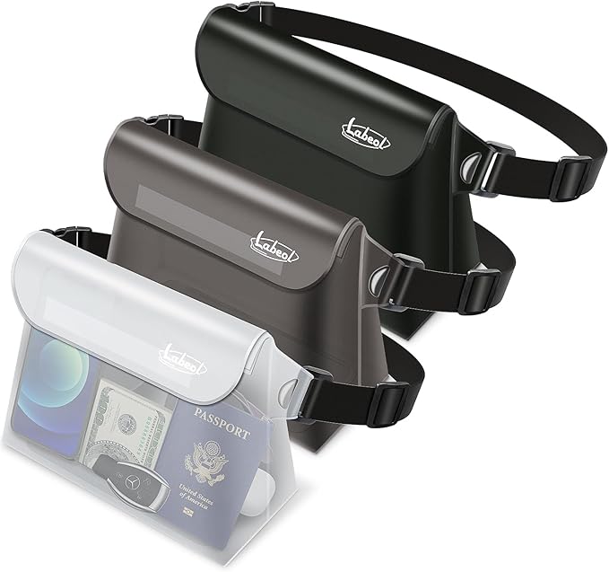 Labeol Waterproof Phone Pouch, 3 Pack With Waist Strap, Fanny Pack to Keep Valuables Dry, Beach Accessories for Swimming Kayaking Boating Fishing