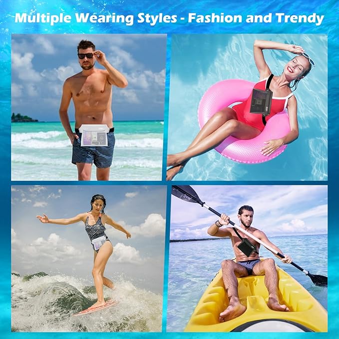 - 🏊【Beach Accessories】The waterproof pouch able to meet the needs of beach and water sports. For example beach activities, swimming, kayaking, boating, snorkeling, sailing, rafting, water slides, surfing and other water activities. Put your valuables in the pouch, don't worry about them getting wet.