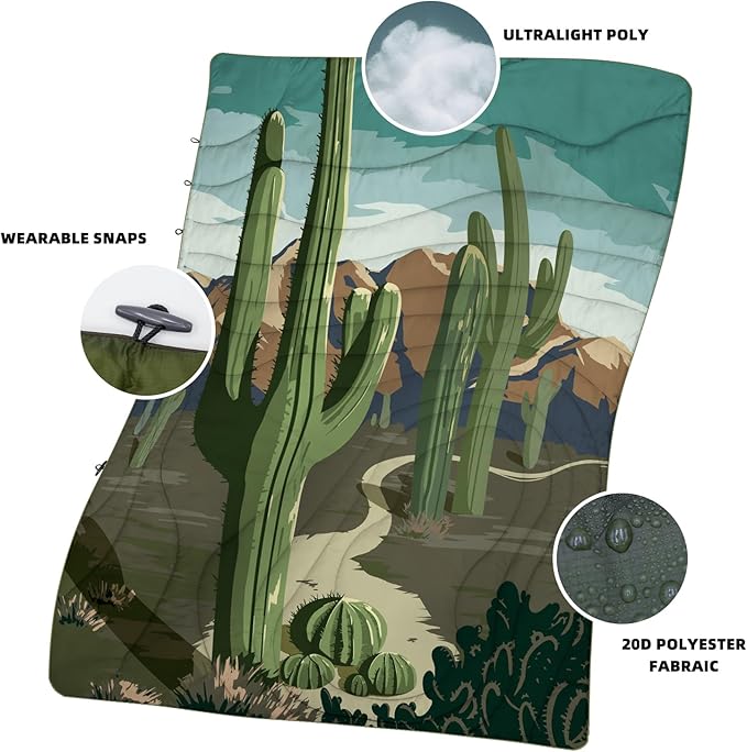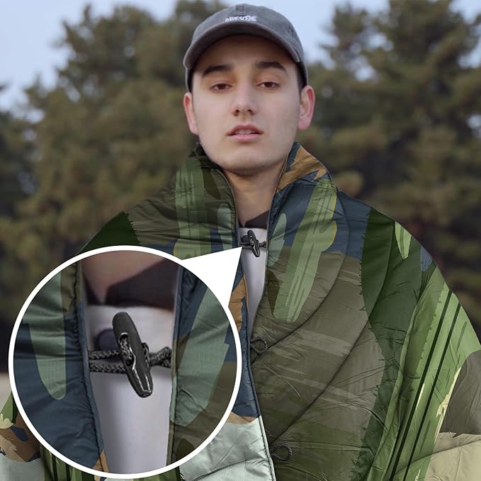 - Multipurpose Puffer Blanket and Poncho - This is a multi-purpose puffy blanket ultralight. In addition to being used as a warm camping blanket for sleeping for cold weather, the buttons on both sides combine to be used as a poncho, which is very convenient and can free your hands