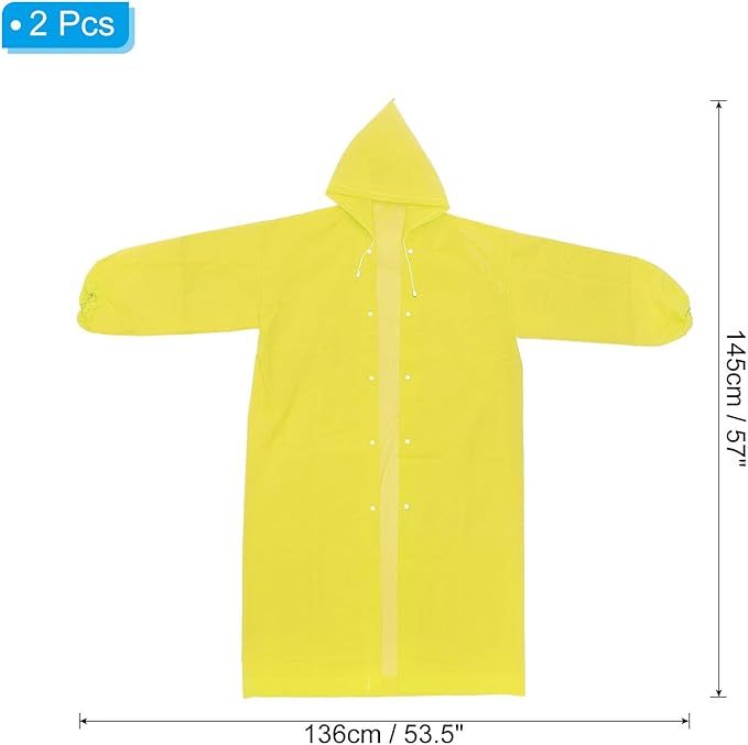 - Color: Yellow; Size: 145 x 136cm / 57 x 53.5 inch (L*W); Packing List: 2 x Rain Ponchos
