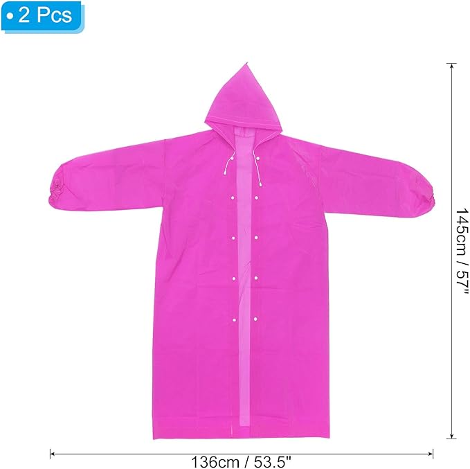 - Color: Pink; Size: 145 x 136cm / 57 x 53.5 inch (L*W); Packing List: 2 x Rain Ponchos