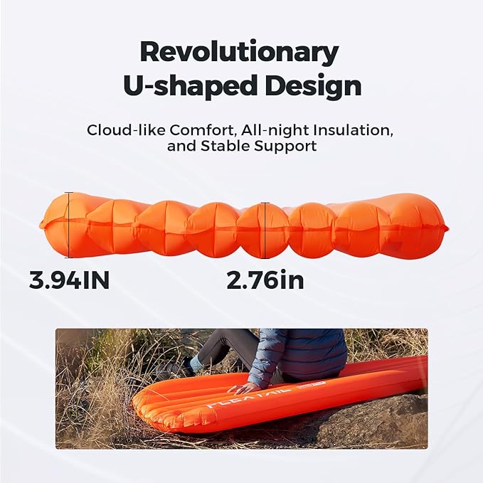 FLEXTAILGEAR Inflatable Sleeping Pad with 5R Value – Ultralight 2.8 Inch Camping Mattress, 4 Seasons Compact Backpacking Gear Essentials for Camping, Traveling, Hiking and Tent