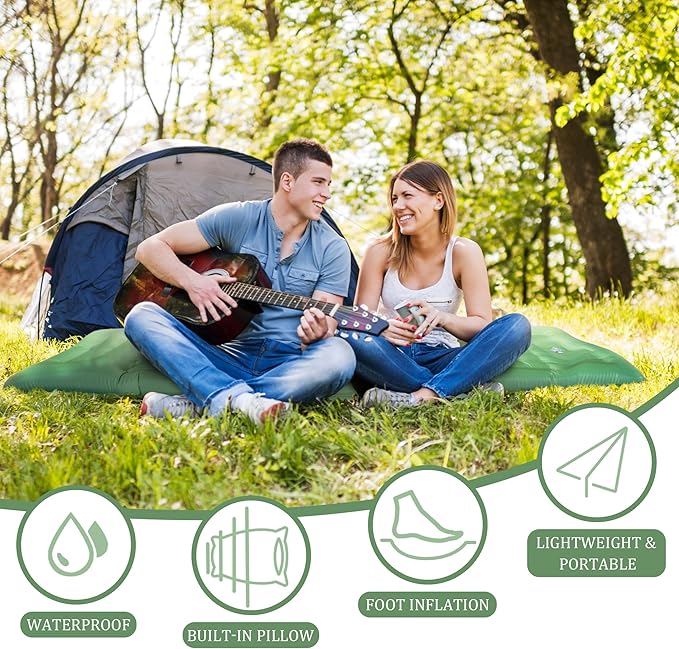 Self Inflating Sleeping Pad for Camping, 77"x 28"x 5" Extra Thick Ultralight Sleeping Mat with Built-in Pump, Air Mattresses for Camping Backpacking Hiking Tent(Green)