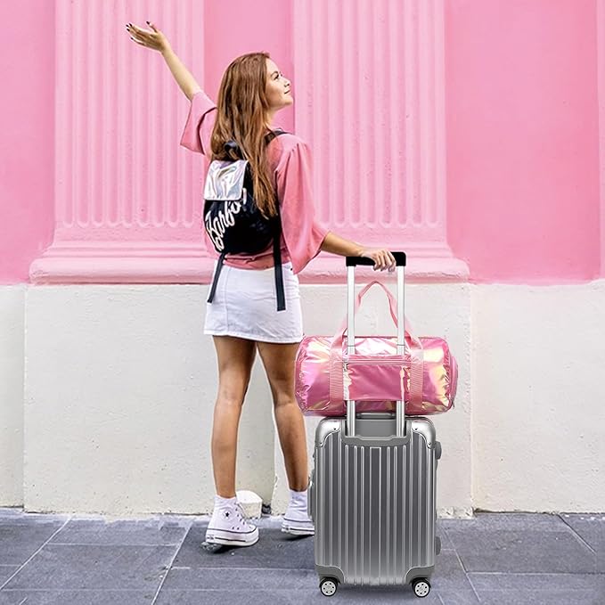 Gym Bag Sports Duffle Bag with Wet Pocket Weekender Overnight Bag with Waterproof Shoe Pouch and Air Hole for Girls Kids Women Travel Foldable BagB0CQ78C227