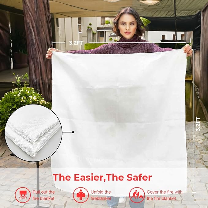 - 🔥【A SURVIVAL FIRE BLANKET FOR HOME】 Made of 100% high-quality flame retardant material, 40*40 inches, Designed as an essential home-safety fire blanket in emergency. Ideal for kitchen, fireplace, grill, BBQ, car, office, backyard, camping and so on.