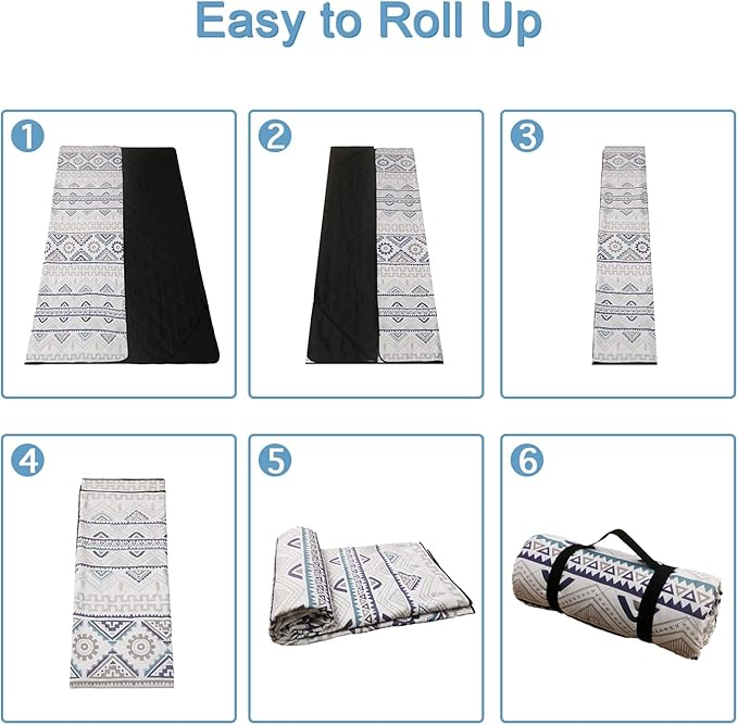 - 【Portable & Foldable】The picnic mat is very lightweight at 2lb, it can be rolled up after use, and closed with an adjustable strap. The picnic blanket can easily be rolled up in a portable size of 14''x 5.5''. it will not lose easily and take up too much space. you can fold it with simple steps, carry or store it anywhere you want.