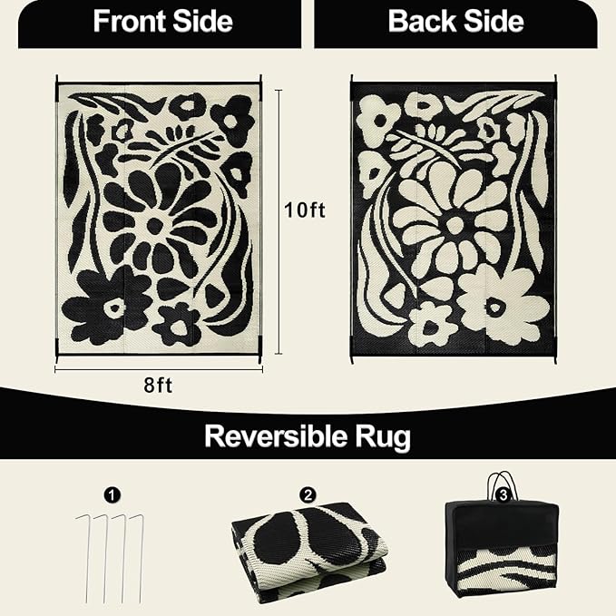 - [Eye-Catching Floral Rug] Our outdoor plastic straw rug is designed with a double-sided pattern, ultimate fusion of the two tones create a novel and unique abstract flower design. Bold colors and subtle patterns make your outdoor space full of vitality
