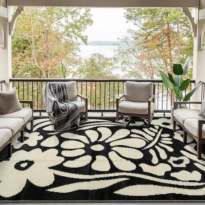 - [Versatile Outdoor Rug] The large outdoor rug is woven from a breathable, lightweight, comfortable plastic material that won't damage your deck or lawn. Ideal for patios, deck gardens, camping, picnics, RV road trips, beaches and indoor rooms