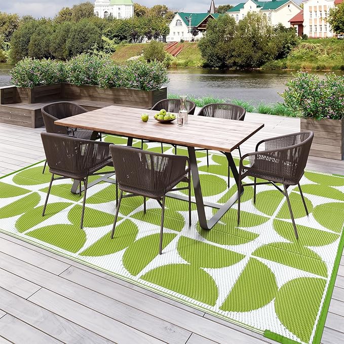 - 【Reversible Rug】-- Bring a touch of boho art charm to your outdoor space with our plastic outdoor rug. Its reversible design lets you switch up your decor easily and enjoy different color combinations that's perfect for your deck, patio, balcony, and more.