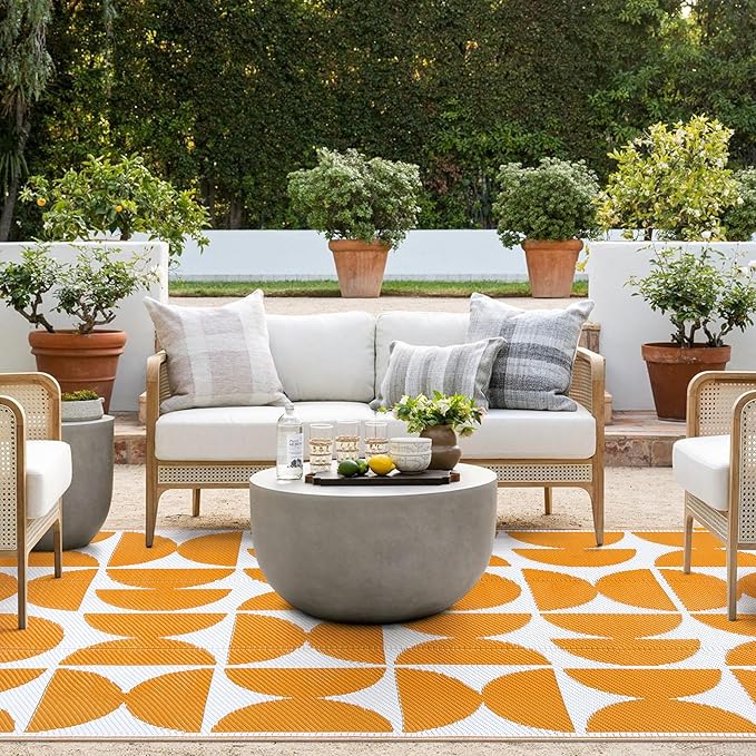- 【UV-Protected & Reliable】-- Made from recycled plastic, this outdoor rug is finished with a UV-resistant coating that prevents fading and keeps colors vibrant. Reinforced edges ensure durability against heavy foot traffic and harsh weather conditions.