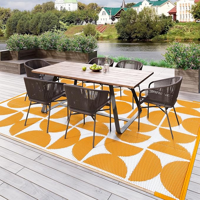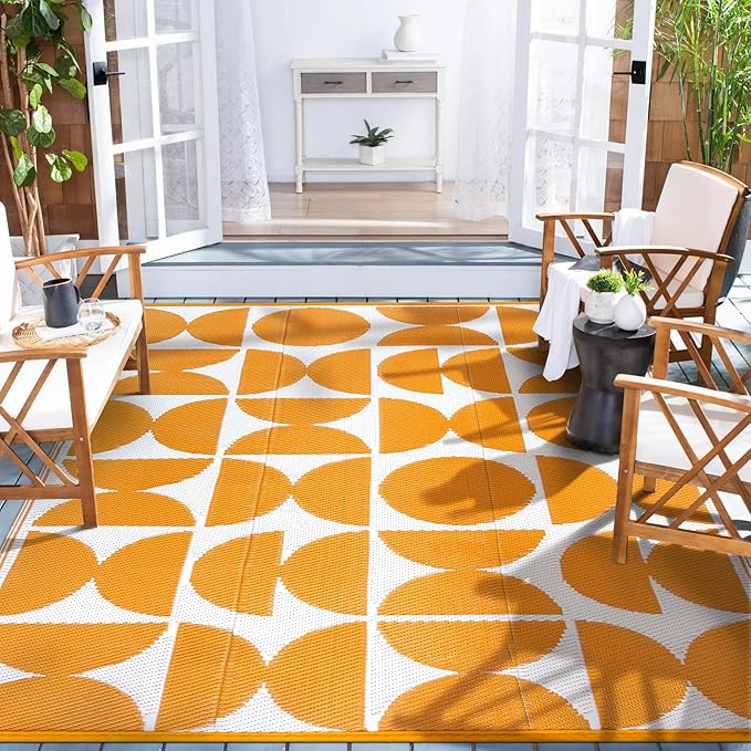 - 【Reversible Rug】-- Bring a touch of boho art charm to your outdoor space with our plastic outdoor rug. Its reversible design lets you switch up your decor easily and enjoy different color combinations that's perfect for your deck, patio, balcony, and more.