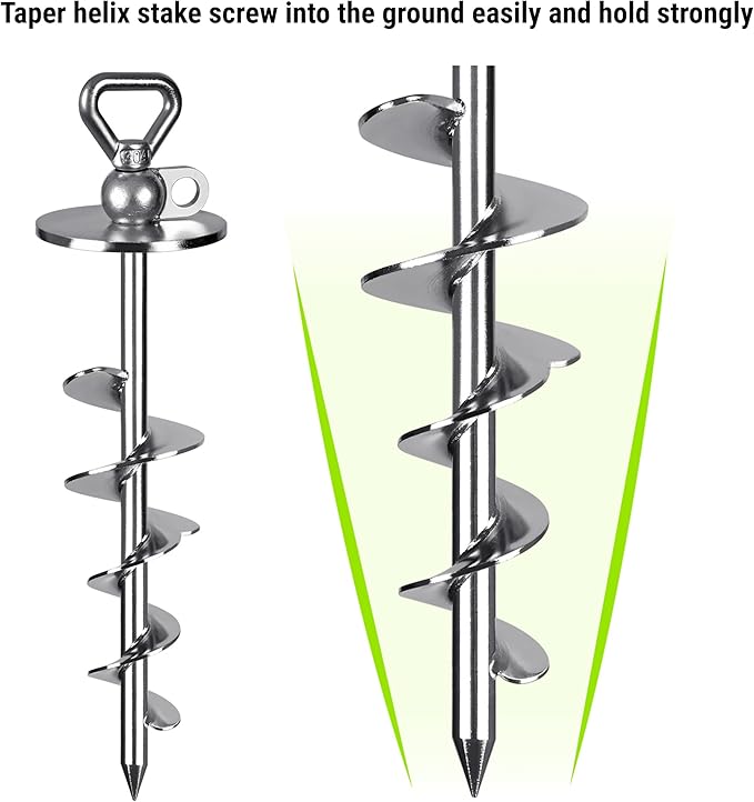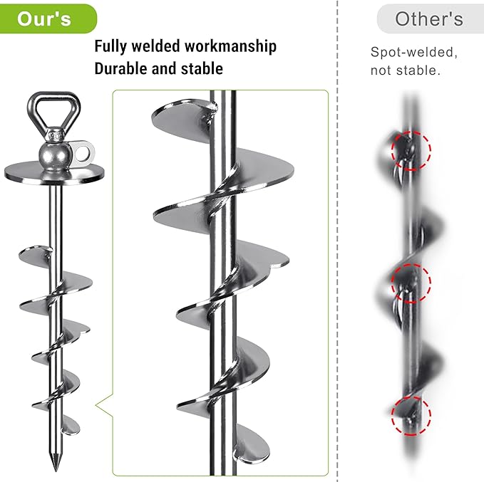 - These ground anchors have a unique design that penetrates the soil like a screw penetrates wood, hold strongly no matter hard soil or sandy island.