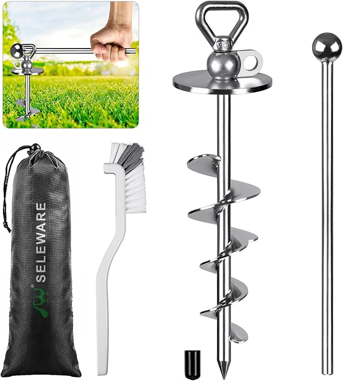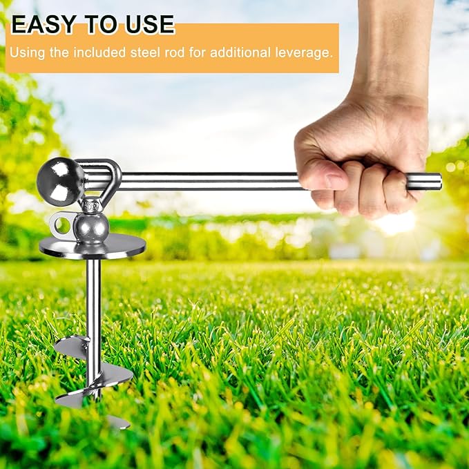 - Also could be a heavy duty ground anchor to hold your green house, trampoline, camping tents, RV awning side shade, swing sets and so on