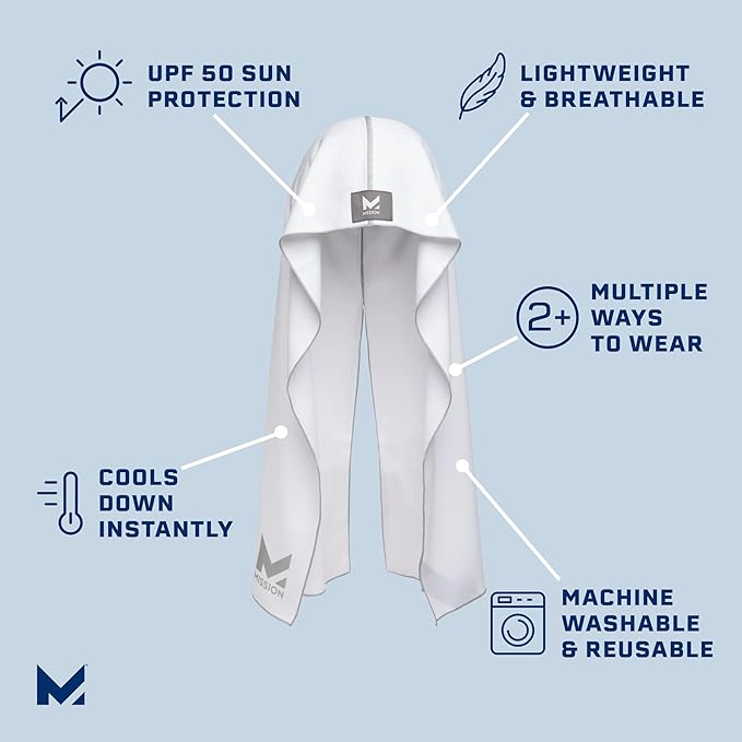 MISSION Cooling Hoodie Towel- Hood Towel, Evaporative Cool Technology, Cools Instantly When Wet, UPF 50 Sun Protection, Contours Your Head to Stay in Place, Great for Sports, Fitness, Gym