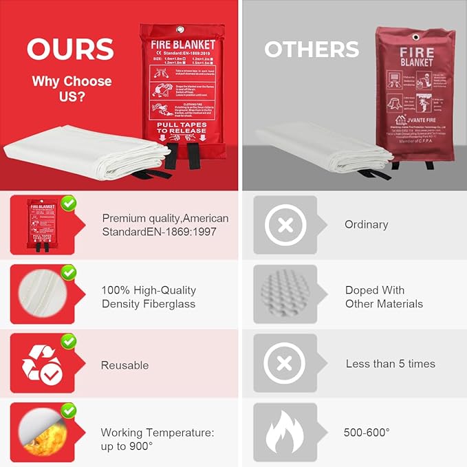 - 🔥【A SURVIVAL FIRE BLANKET FOR HOME】 Made of 100% high-quality flame retardant material, 40*40 inches, Designed as an essential home-safety fire blanket in emergency. Ideal for kitchen, fireplace, grill, BBQ, car, office, backyard, camping and so on.