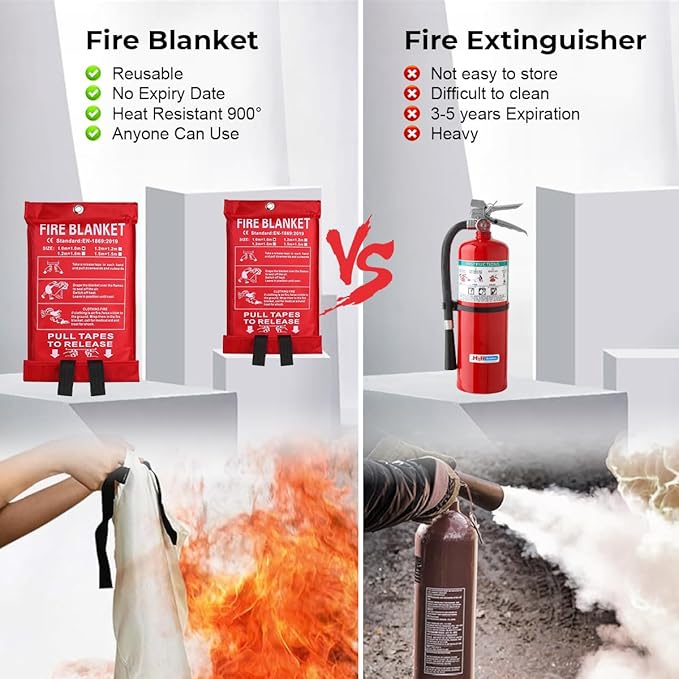 - 🔥【Won’t Expire】Easy to store in the kitchen, office, car, or carry outdoors for emergencies. Unlike traditional fire extinguishers, fire blankets never expire. It does not need to be replaced.