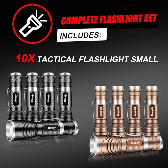 LED Tactical Flashlight Bright,3Modes High Lumens,Zoomable,Everyday Small Flashlights Powerful for Camping Accessory,Emergency,Only Flashlights(10 Pack)