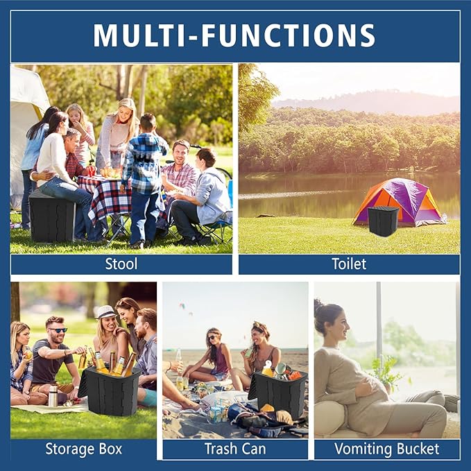 - 【Multifunctional and Widely Applicable】With lid, it can not only be used as an outdoor toilet, but also as indoor toilet for the elderly,a trash can, a storage box, a stool, a vomiting bucket, etc. to satisfy your different needs when taking outdoor activities. Perfect for backpacking, traveling, camping, boating, fishing, hiking, long road trip, and more.