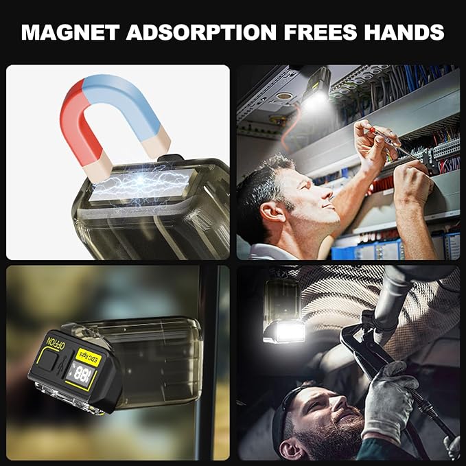 - 【Clip On Hat & Head Wear】The multifunctional light can be clipped to your cap or clothes, can also be used as a flashlight, and the bottom has a strong magnetic base. Different ways to use, meet your lighting needs in various conditions.