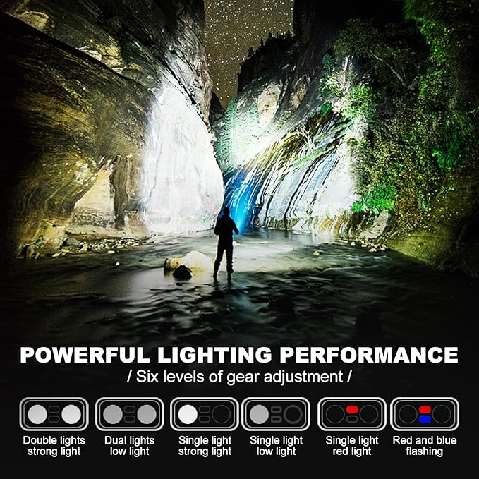 - 【6 Modes Super Bright Lights】Super bright light instantly illuminates in one second, lighting up your front and providing a clear view. Choose from 6 different modesto meet your light needs in different scenes.